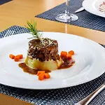 Den läckra frukosten serveras i restaurangen. Det har ett perfekt läge utanför centrum.